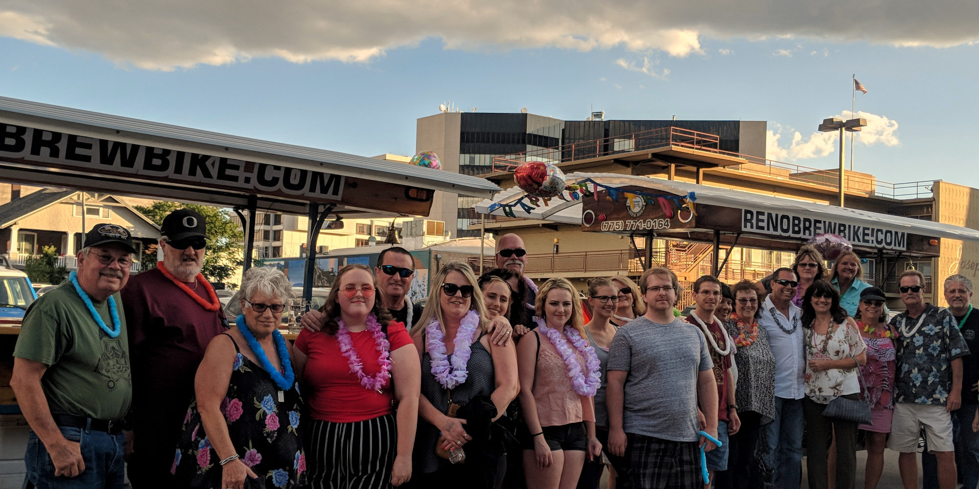 Experience Downtown Reno on a Brew Bike tour with a large group.